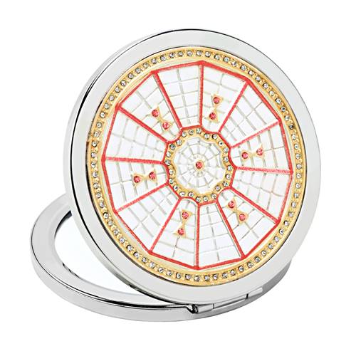 Miroir de Sac Rond Argenté motifs Rouges et Dorés - X2